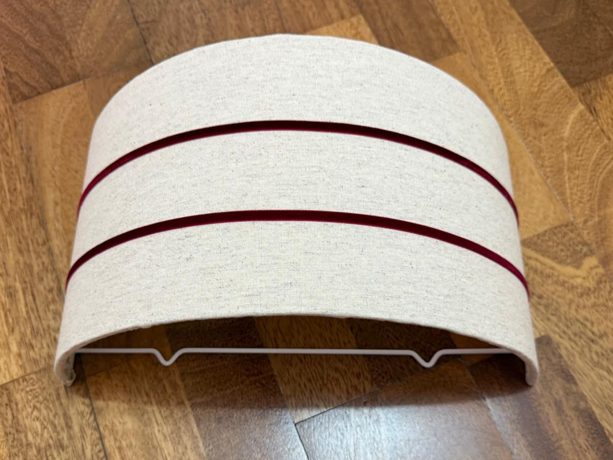 Aplique curvo de 36x20 en lino crudo y terciopelo.