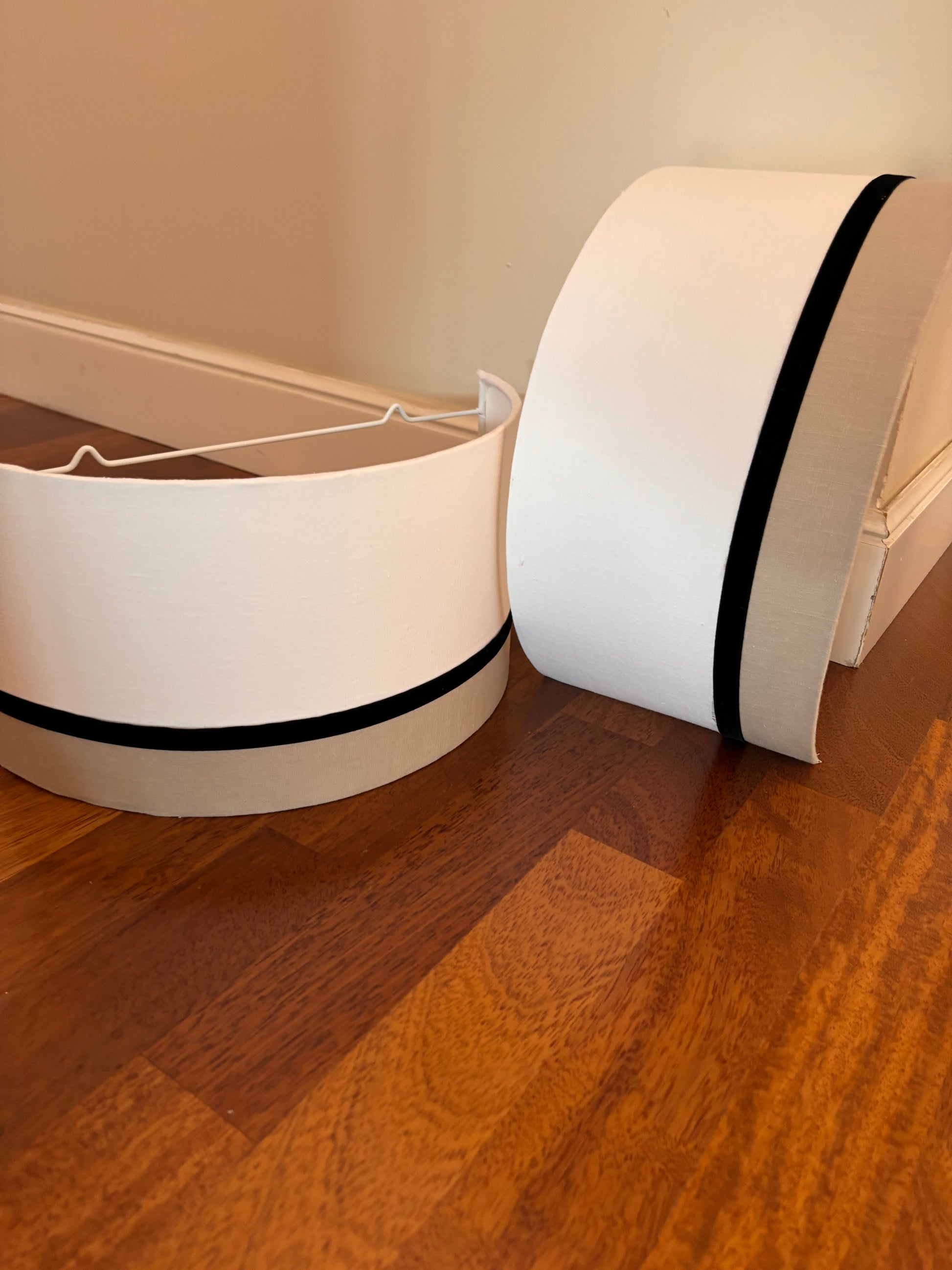 Aplique de pared en medida 36x20 en tela de lino blanco roto, beige y terciopelo.