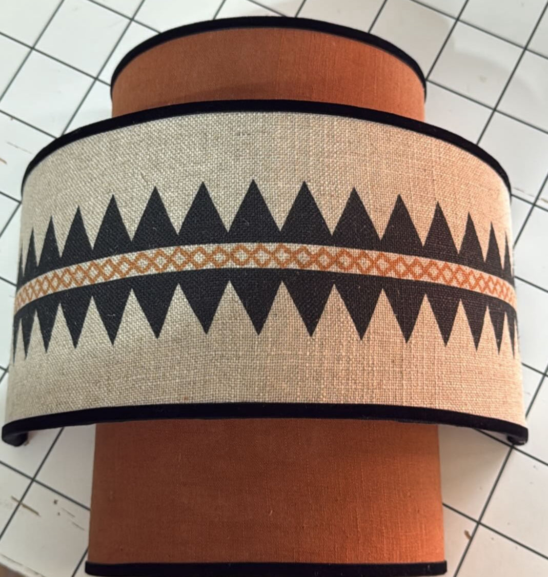 Aplique doble en lino cazuela y tela corfu con terciopelo.
