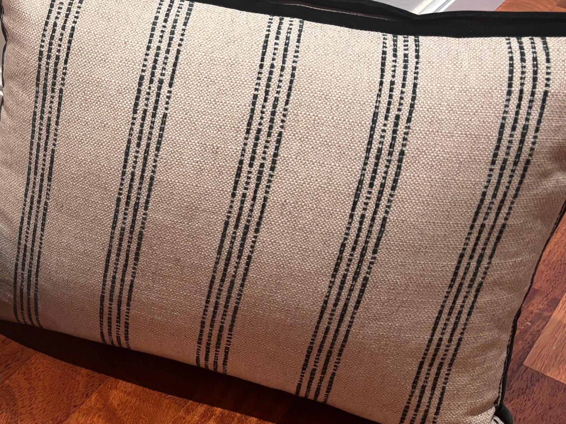 Cojín tela rayas verdes con canto de terciopelo de 5cm