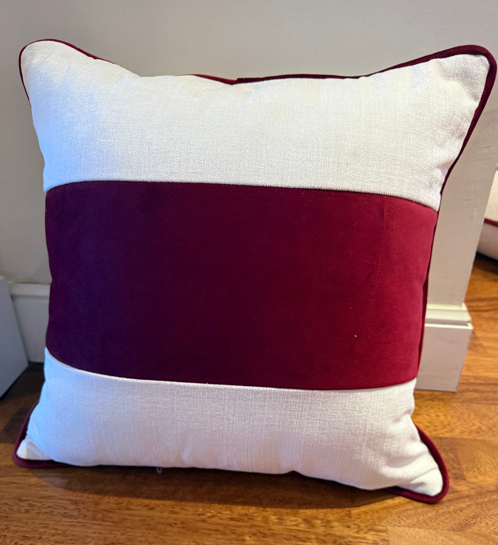 Cojín liso con franja de color y ribete.