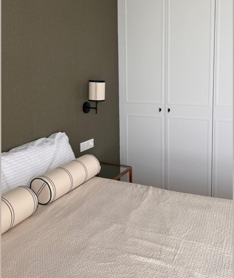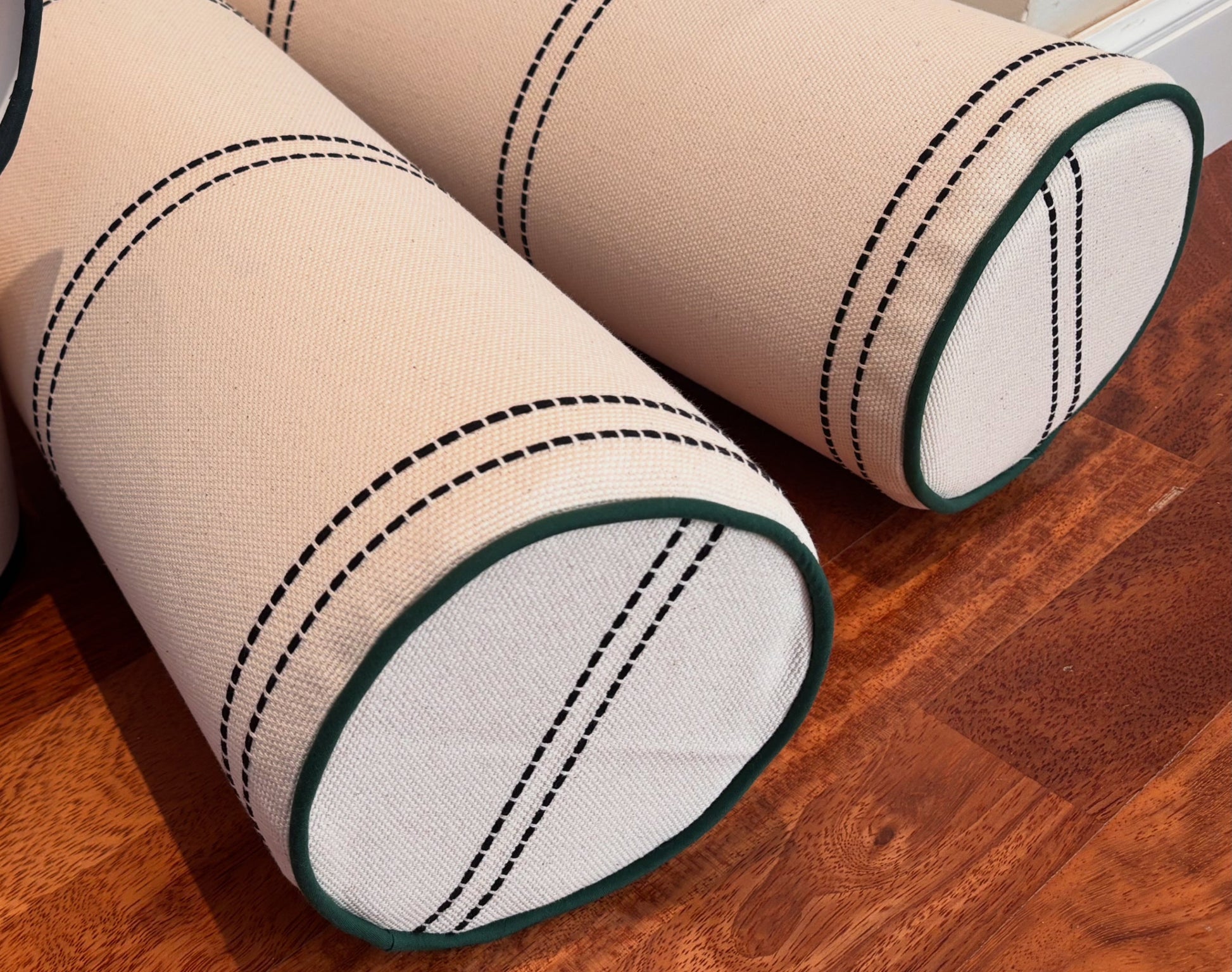 Cojín rulo con tela Carla negra y ribete.