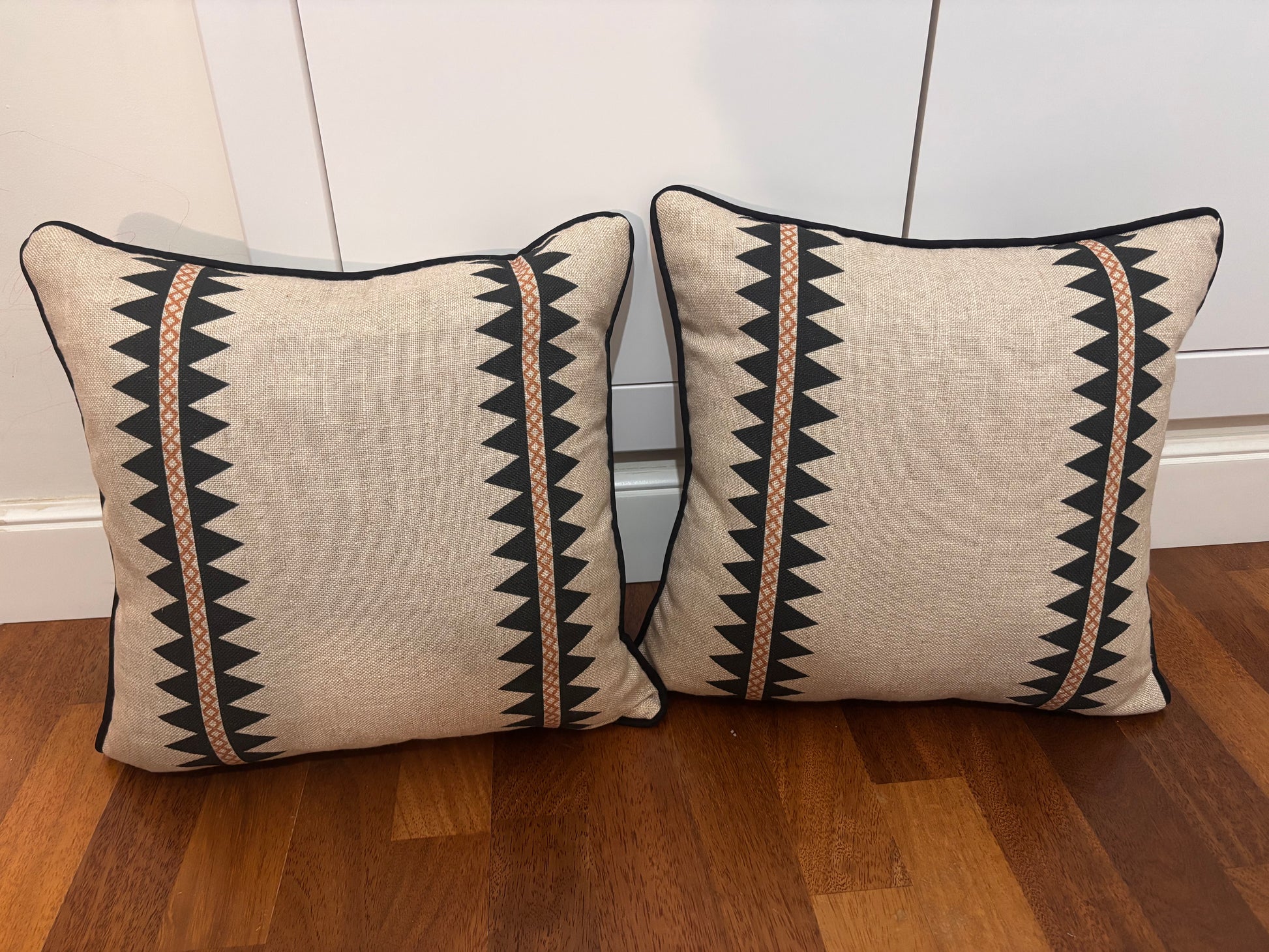 Cojín en tela Corfú negra/roja con ribete. Indicar color de la tela.