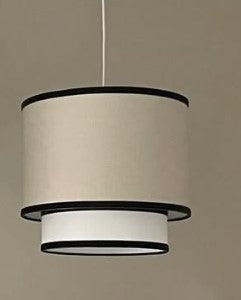 Pantalla doble de techo con lino beige y blanco y terciopelo.