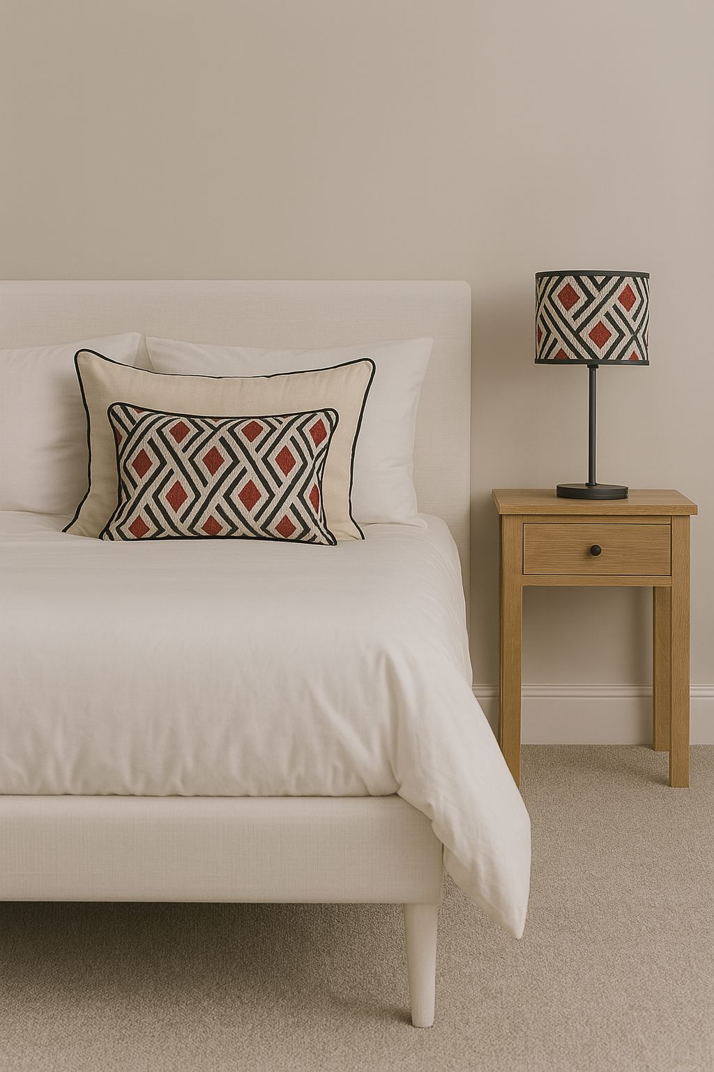 Pantalla con tela rombo teja con ribete de color